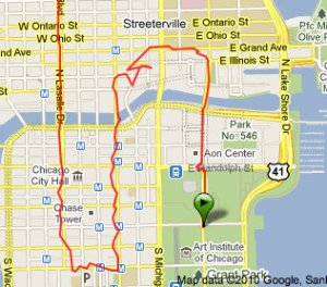 Something many visitors to Chicago don’t anticipate is the propensity of city designers to run roads directly underneath other roads rather than mess with a traffic-snaring intersection. With Columbus Drive, on which the marathon starts, they actually built a triple-decker road. Now I suppose I should be understanding, as I’m sure it’s hard to get a satellite signal from the Chicago sewers, but having Garmin give up the ghost less than 3 minutes into the marathon did not put me in the best of moods.