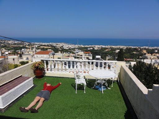 Despite what it’s own tourist Web site says (“Piskopiano is the poor relative of Koutouloufari and Ano Hersonissos…“), the town itself, situated 25km from the Cretan capital Heraklion, features beautiful old churches, tavernas with extensive outdoor seating, and plenty of Mediterranean views. I think it can best be experienced by watching this YouTube video that the hotel sent Handsome J’s mom in response to her request for directions: