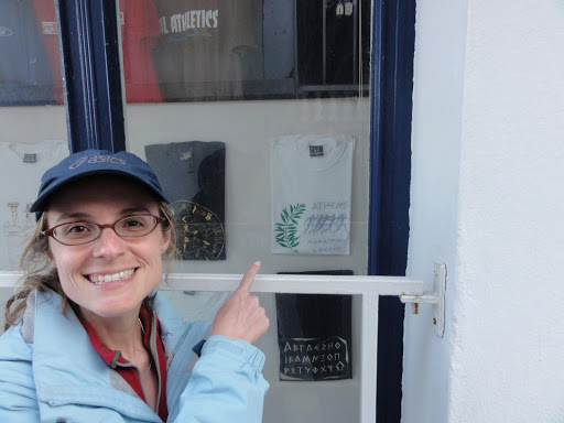 And as I got back to a happier place in life – amazing how a good vacation can do that – I began to geek out a bit more about the fact that I was in Greece, the birthplace of the marathon! I made it a mission to see if I could find the marathon-themed T-shirt my dad had brought me from a previous Greece trip. I took me half the week, but I spotted it in a window in Agios Nikolaos:
