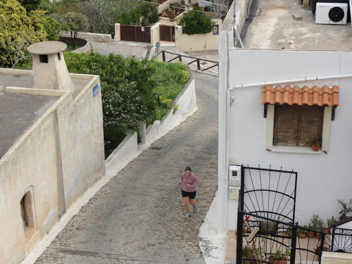 Luckily, what Greece lacks in running paths, it makes up for in scenery. We set up camp in the small town of Piskopiano, which only gets a mention on Wikipedia in the article “Lists of Settlements in the Heraklion Prefecture“. (Now really, Wiki-writers, I know Greece is having some tough times, but that doesn’t mean we have to downgrade their towns to “settlements”.)