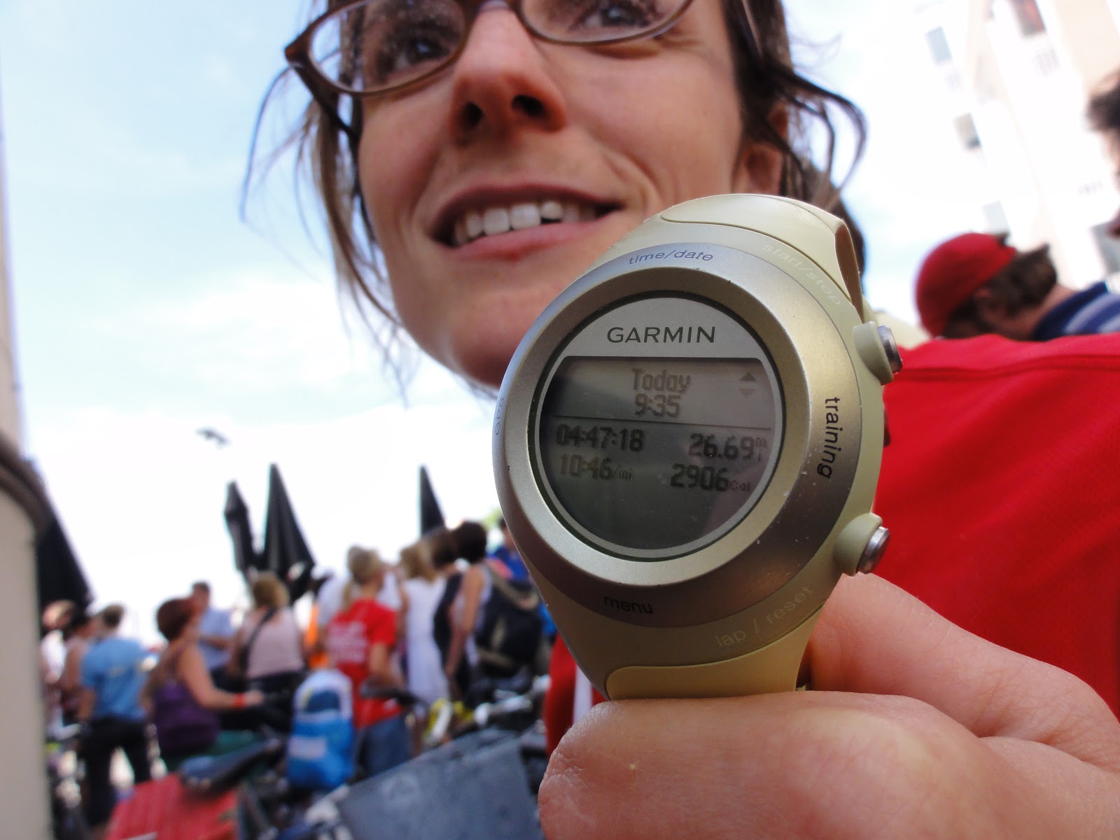 I skipped to a Shakira song on the iPod and gunned it. It wasn’t much of a gunning, and when we finally crossed the finish, I’m pretty sure the words “Gott sei Dank” (Thank God) came out of my mouth, which is vaguely odd, because I’d never actually said that phrase in German before. But, it was the first thing that popped into my heat-addled brain.