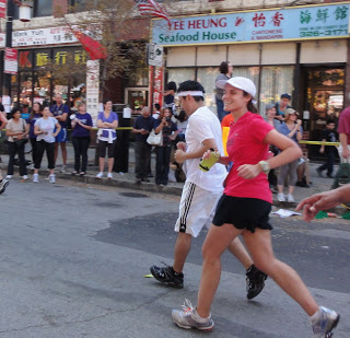Despite a minor breakdown of our spectator coordinating, I did manage to catch sight of Handsome J and company on a bridge around mile 18, and then again around mile 21 in Chinatown.