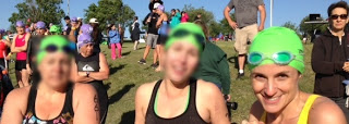 The swim start was a standing one, so we were directed to wade out to about chest-deep and wait for the horn.
