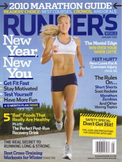 Runner’s World is the more approachable of the two, and tries to serve all levels of runners. This means that advanced runners will have to put up with regular “couch to 5K” features, and beginners will have to tread carefully lest the nutrition section send them to seek safety in a Denny’s. I’m not sure what “level” of runner I qualify as, but I personally like RW best for its human interest stories.