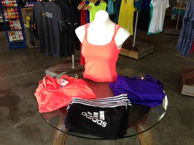 See ladies? You can totally find cute clothes in a good, old-fashioned running store. (That black/grey striped top. I WANT IT. Must be responsible with paycheck, must be responsible with paycheck…)