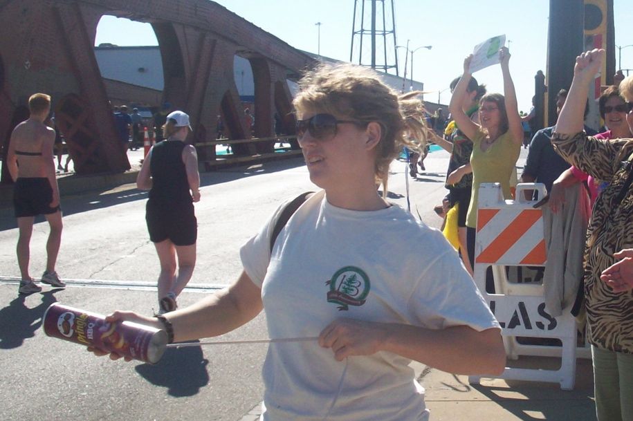 2. Look for the stage at mile 8 to catch my favorite group on course, the Righteously Outrageous Twirling Corps. This all volunteer LGBT group features very fit men in camo twirling rifles to disco and techno. They are amazing. Someday I’ll have to see them when I’m not busy running.
